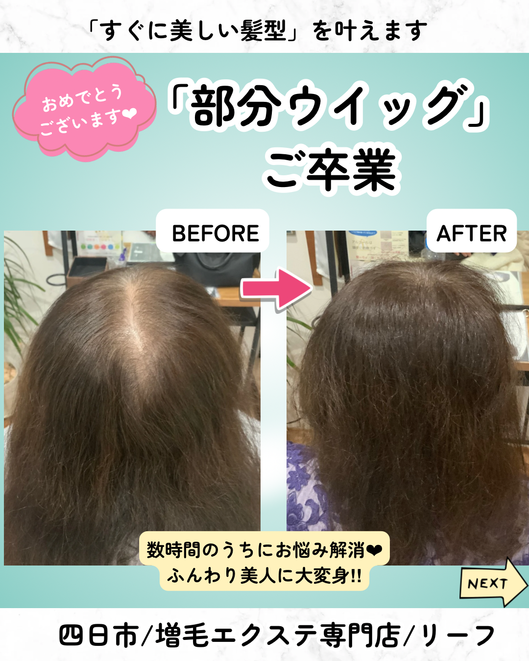 四日市在住60代女性|分け目・つむじ割れの悩みを自然に解消~「まちゼミ」がきっかけで始めた増毛エクステと発毛ケア
